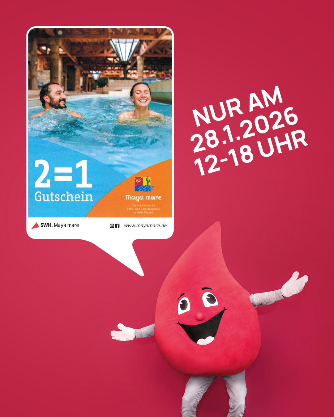 Feiertage, Winterwetter und Infektwelle sorgen zusammen für eine aktuell angespannte Situation der Blutreserven im Universitätsklinikum Halle, die auf einen unverändert hohen Bedarf an Blutprodukten der medizinischen Einrichtungen trifft. Um die Versorgungssituation im Klinikum zu sichern, öffnet die Blutspende im Universitätsklinikum zusätzlich am Mittwoch, dem 28.1.2026, von 12 bis 18 Uhr und gibt an diesem Tag 2:1-Gutscheine für das Bade- und Saunaparadies Maya mare aus.