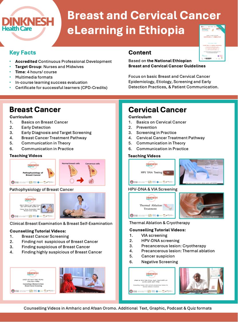 Courses are developed through a stakeholder-driven process, in close collaboration with Ethiopian academic institutions, the Ministry of Health, and clinical experts, and are aligned with national cancer prevention and control guidelines.