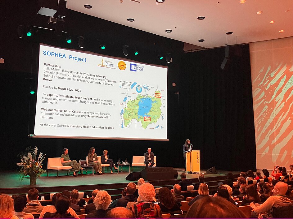 Darüber hinaus war Frau Otieno als Podiumsteilnehmerin in der Sitzung „Förderung der Bildung in den Bereichen Klima, Umwelt und öffentliche Gesundheit in Afrika” tätig. Die Diskussion befasste sich mit Innovationen, Lücken und Möglichkeiten der Zusammenarbeit, um Klima- und planetare Gesundheit in die Gesundheitsbildungssysteme Afrikas zu integrieren. Während der Sitzung berichtete Frau Otieno über Erfahrungen der Deutschen Allianz für Klimawandel und Gesundheit (KLUG), darunter Beiträge mehrerer deutscher Universitäten zur Förderung der planetarischen Gesundheitserziehung. Sie hob hervor, wie ähnliche Modelle derzeit in Afrika im Rahmen des SOPHEA-Projekts (Strengthening One and Planetary Health in Eastern Africa) entwickelt werden.
