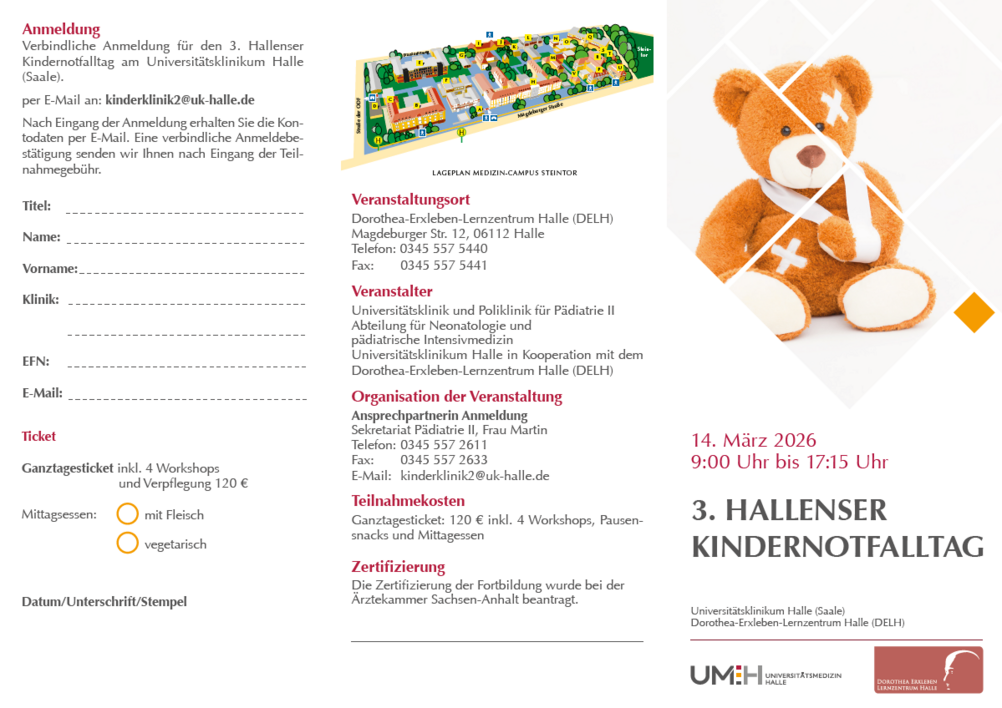 Am 14. März 2026 findet im Dorothea-Erxleben-Lernzentrum Halle (DELH) der 3. Hallenser Kindernotfalltag statt.