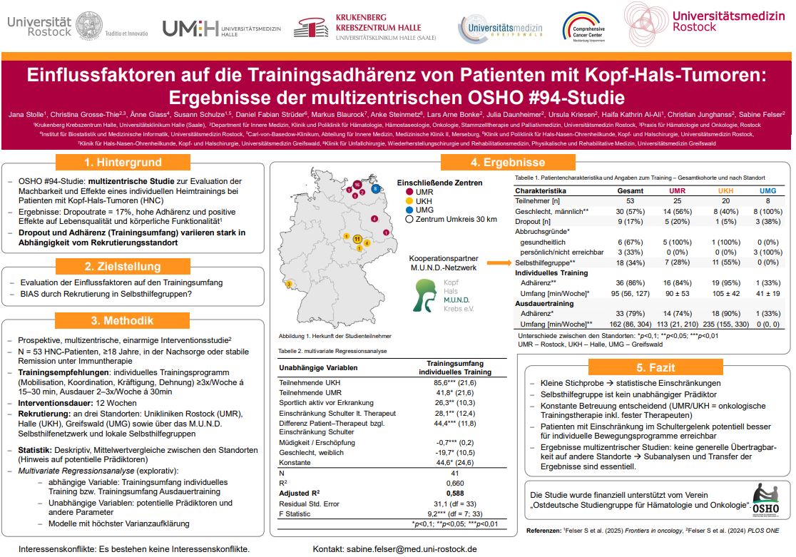 - Posterdiskussion: Einflussfaktoren auf die Trainingsadhärenz von Patienten mit Kopf-Hals-Tumoren: Ergebnisse der multizentrischen OSHO #94-Studie