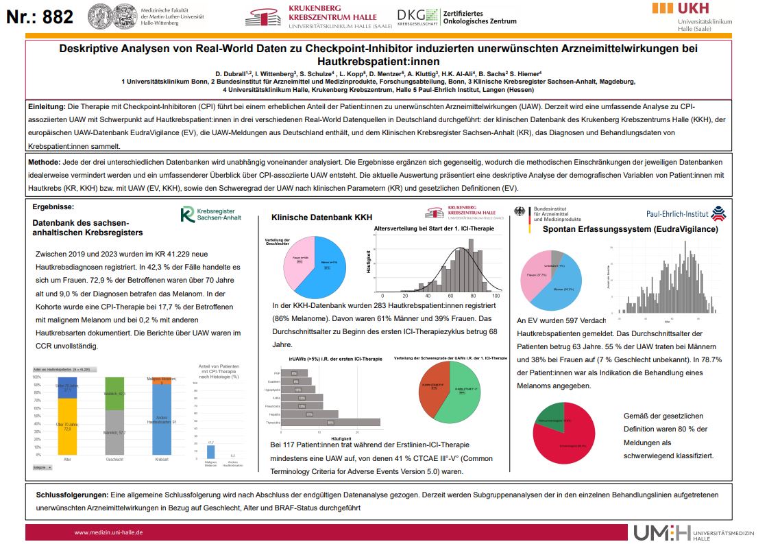- E-Poster: „Complementary analysis of adverse drug reactions related to immune checkpoint inhibitors in skin cancer patients“ (Abstractnr.: DKK2026-180, Vortragende*r: Dr. med.Sonja Hiemer)