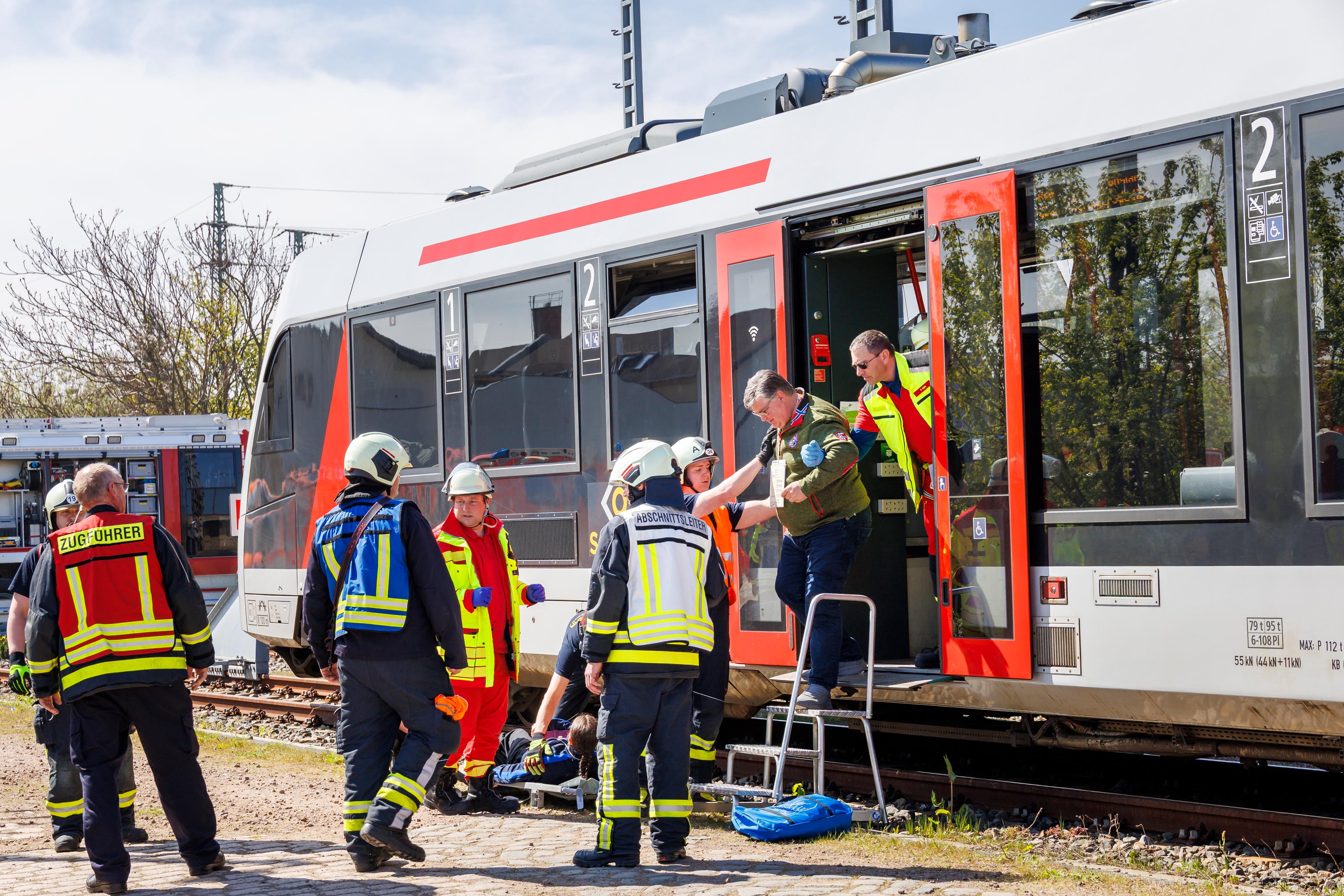 Blaulicht, Sirenen, Rettungshubschrauber: Was am 25. April 2026 auf dem Gelände des Güterbahnhofs in Halle stattfand, war kein reales Zugunglück, sondern die jährliche Katastrophenschutzübung der Stadt Halle. Rund 1000 Mitwirkende trainierten anhand der Simulation ihre Abläufe in einer extremen Krisensituation. Neben Feuerwehr, Rettungsdienst, Katastrophenschutz, Polizei, Wasserwacht, Organisationen der Deutschen Bahn sowie ADAC- und DRF-Luftrettung waren auch das BG Klinikum Bergmannstrost, das Krankenhaus St. Elisabeth und St. Barbara sowie das Universitätsklinikum Halle (Saale) an der Großübung beteiligt.