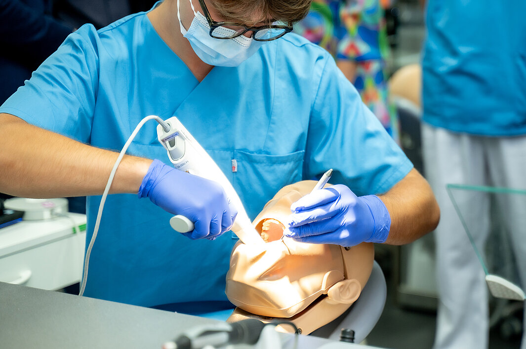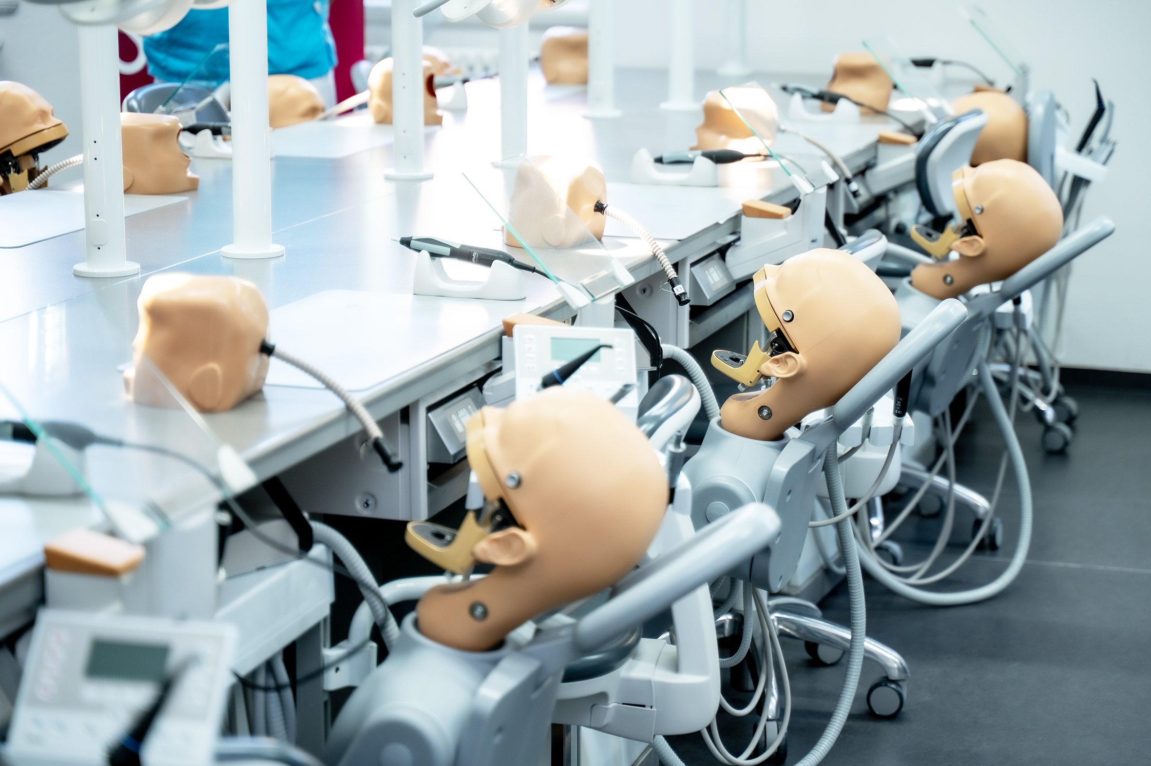 Die Technik kommt in einem umgebauten Raum mit 24 neu eingerichteten Arbeitsplätzen zum Einsatz. Ab sofort findet dort der vorklinische Studienabschnitt in der zahnärztlichen Prothetik statt. Die ergonomischen Arbeitsplätze sind mit Phantomköpfen der neuesten Generation mit Flüssigkeitsabsaugung ausgestattet. An diesen Modellen lassen sich individuelle Kiefer anbringen, um verschiedene Szenarien zu simulieren und realitätsnah üben zu können.