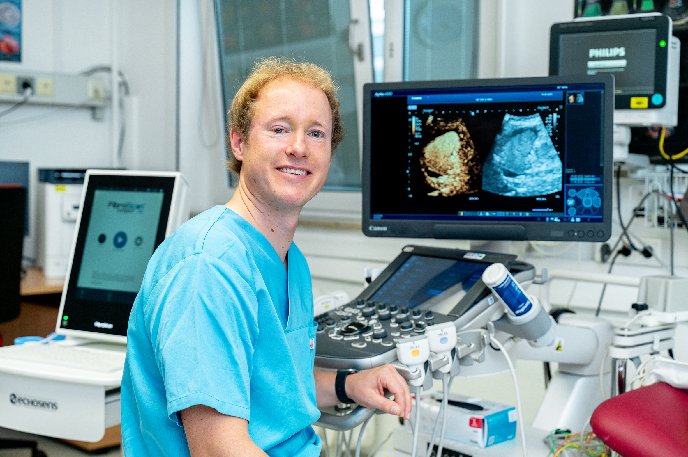 „Unser Ziel ist es, die sonografische Diagnostik und die ultraschallgestützten Behandlungen an der Universitätsmedizin Halle weiter auszubauen um unseren Patient:innen eine hochpräzise, schmerzfreie und insbesondere strahlenfreie Bildgebung anbieten zu können. Hierfür versuchen wir auf kostenintensive, zeitaufwändige und zum Teil mit Strahlenbelastung einhergehende schnittbildgebende Verfahren dort zu verzichten, wo der Ultraschall eine gleichwertige oder bessere Alternative bietet“, sagt Dr. Valentin Blank, Leitender Oberarzt in der Universitätsklinik und Poliklinik für Innere Medizin I und Leiter des Ultraschallzentrums der Universitätsmedizin Halle.