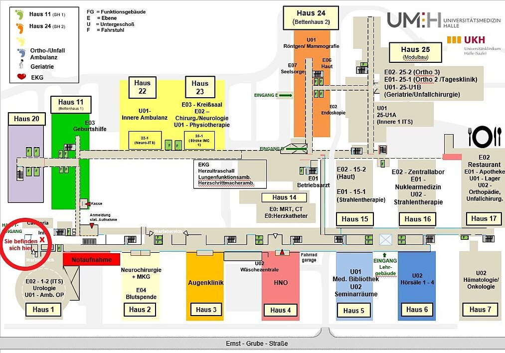 Das ist der Haupteingang der Universitätsmedizin Halle am Standort Ernst-Grube-Straße. Hier kommen und gehen täglich hunderte Patienten, die in unserem Klinikum behandelt werden.